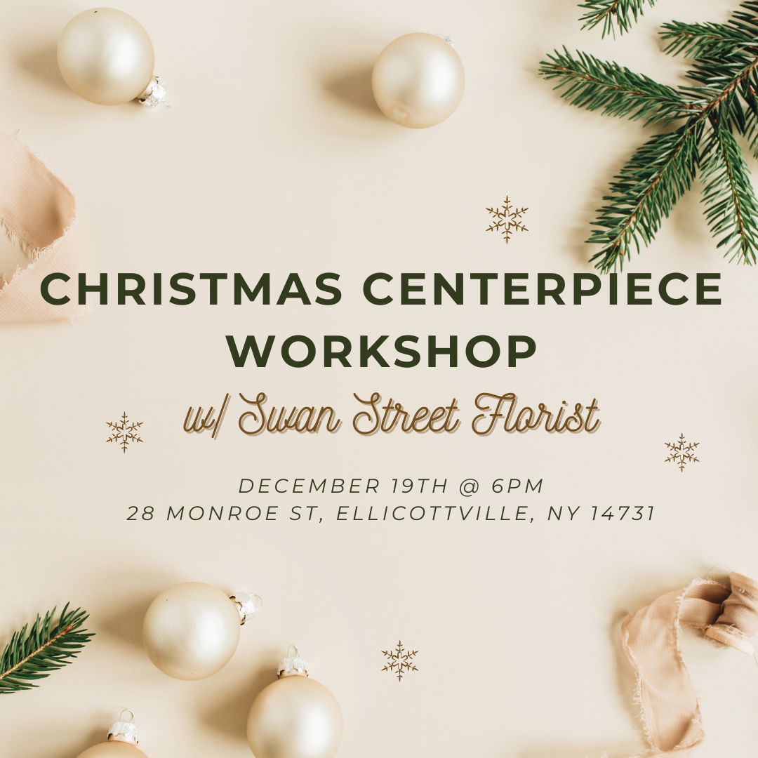 Our expert instructor Amy, from Swan Street Florist, will guide you through the process, sharing tips and tricks along the way. This in-person event will take place at 2nd Street in Little Valley, NY, USA. Whether you're a seasoned crafter or a beginner, everyone is welcome to attend. Don't miss out on this opportunity to unleash your creativity and add a personal touch to your holiday decorations. Grab your friends and family and join us for a memorable workshop!