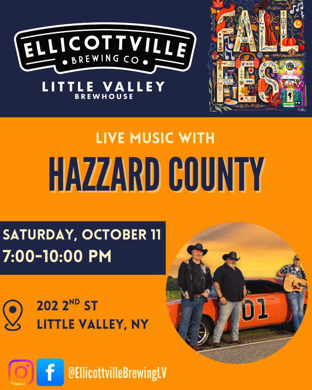 Join us in Little Valley for a quieter EBC experience!Enjoy live music from Hazzard County from 7-10pm, plus great beers and food!