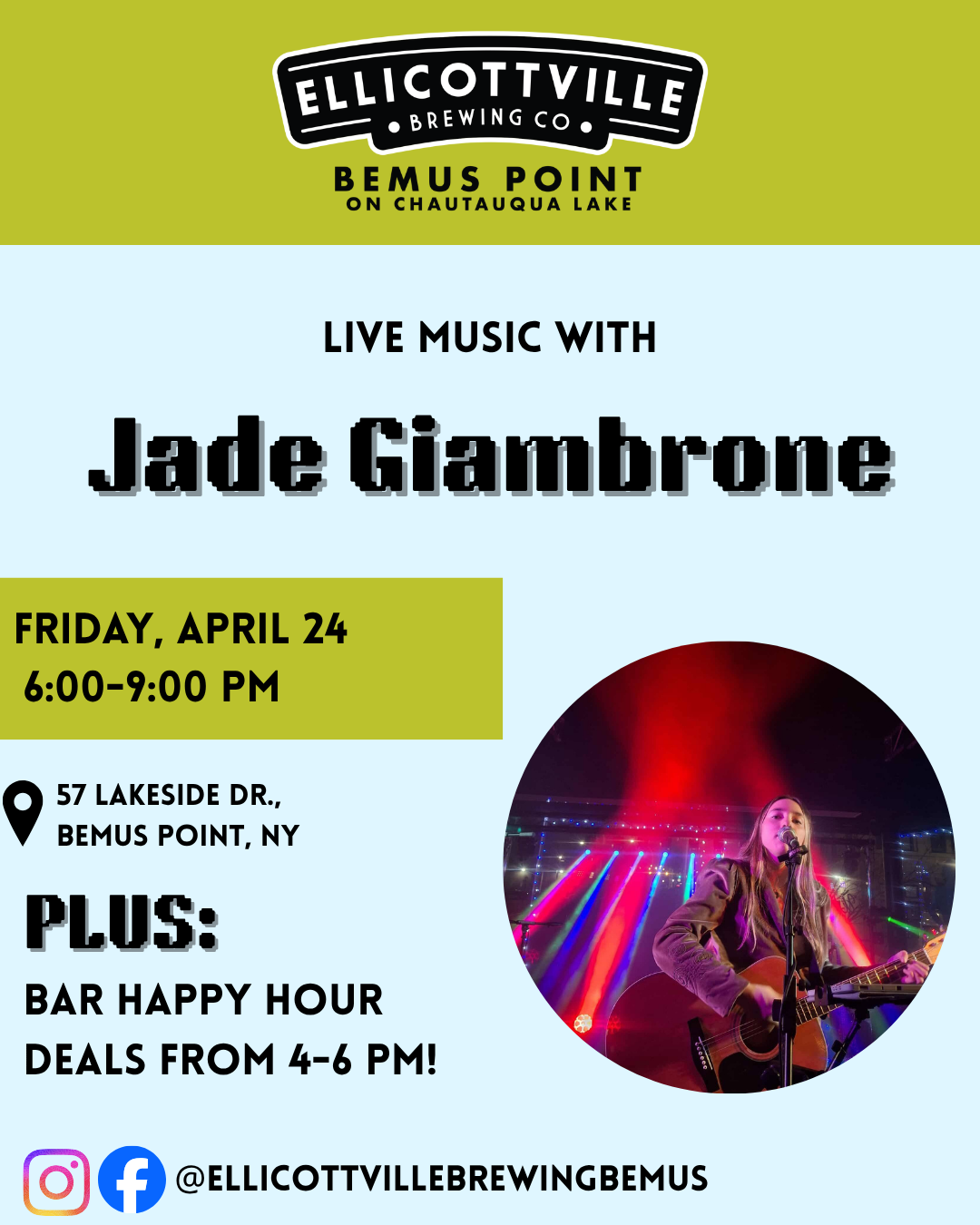 Kick off the season at Chautauqua Lake with live music featuring Jade Giambrone on Friday, April 24th from 6-9pm!
